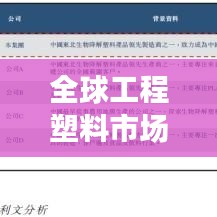 目前,全球工程塑料市场呈现多元化竞争格局,众多企业纷纷加大研发投入,提高产品质量,拓展市场份额,在全球范围内,一些领先的工程塑料企业凭借其卓越的技术实力和市场表现脱颖而出。