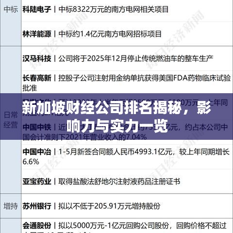 新加坡,这座繁荣的岛国以其开放的经济政策、优越的地理位置和先进的金融服务业著称于世,在全球财经领域,新加坡的财经公司以其卓越的表现和创新能力赢得了极高的声誉,本文将探讨新加坡财经公司的排名及其影响力。