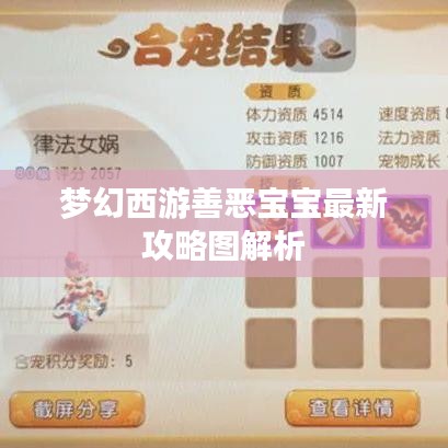 本文为各位玩家带来了梦幻最新善恶宝宝攻略图,希望能够帮助大家更好地了解和掌握善恶宝宝的获取、养成及使用策略,祝愿各位玩家在游戏中取得更好的成绩,享受游戏的乐趣。