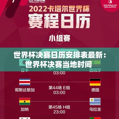 作为全球最盛大的足球赛事,世界杯决赛无疑是球迷们最期待的时刻。以下是最新的世界杯决赛日历安排表,供广大球迷参考。