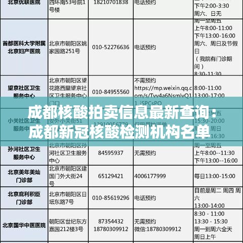 成都核酸拍卖作为一种创新的服务模式,为市民提供了便捷、经济的核酸检测服务。通过关注相关渠道,您可以及时了解成都核酸拍卖的最新信息,为自己的健康保驾护航。让我们共同努力,为打赢疫情防控阻击战贡献力量。
