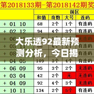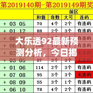 随着彩票市场的日益繁荣,越来越多的人开始关注彩票预测,大乐透作为中国彩票市场的一种重要玩法,吸引了众多彩民的关注,本文将围绕“大乐透92今日最新预测”这一主题,为大家带来全面的分析。