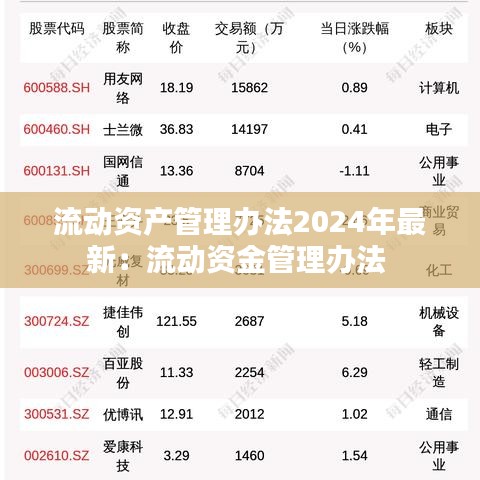随着市场经济的不断发展和企业运营模式的多样化,流动资产管理成为企业财务管理的重要组成部分。为了更好地规范流动资产管理,提高企业资金使用效率,我国相关部门于2024年发布了最新的流动资产管理办法。本文将详细介绍2024年流动资产管理办法的主要内容,帮助企业更好地理解和执行相关法规。