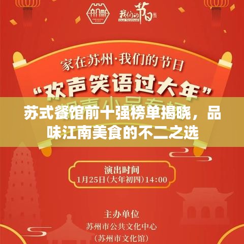 随着人们对美食文化的热爱和追求,各地的特色餐馆如雨后春笋般涌现,江南地区的苏式餐馆,以其独特的烹饪技艺和醇厚的口感,赢得了广大食客的喜爱,本文将为您介绍苏式餐馆排名前十名,带您领略江南美食的韵味。