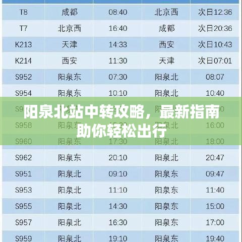 掌握最新的阳泉北站中转攻略,遵循正确的中转流程,您将能够顺利完成中转,享受愉快的旅行。