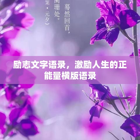 励志文字语录横版,以其独特的魅力和价值,成为我们生活中的一股动力,在这个充满挑战的时代,我们需要用励志的文字来鼓舞自己,激发潜能,勇往直前,让我们共同感受励志文字语录横版的魅力,让它在我们的生活中发挥巨大的作用。