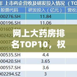 随着互联网的普及和电子商务的飞速发展,越来越多的人选择在网上购买药品,网上大药房因其便捷性、隐私保护和药品种类的丰富性而受到消费者的青睐,本文将介绍网上大药房排名前十名,为消费者提供参考。